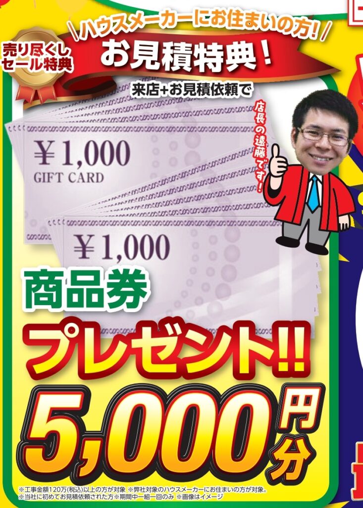 - お見積り特典!ハウスメーカー住宅限定商品券5,000円