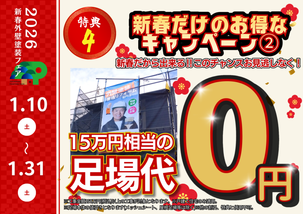 🎯【特典④】お得な新春企画|足場代15万円相当が0円‼